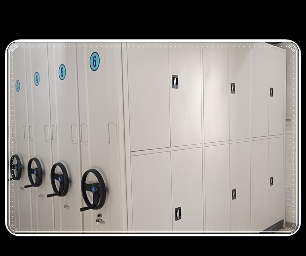 手搖動密集架具有載量多,使用方便等特點(diǎn),主要用于檔案資料、證券憑證等的存放。主要由軌道、柜體、底盤、面板、門板、目錄卡及傳動裝置、防倒裝置、密封裝置九部分組成: